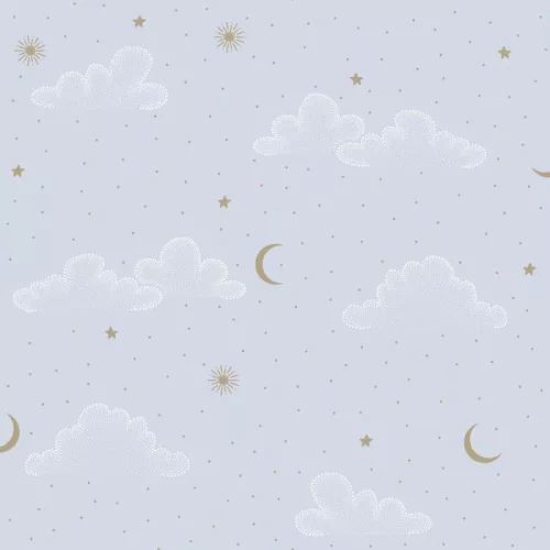 Babakék alapon fehér pezsgőarany égbolt mintás tapéta