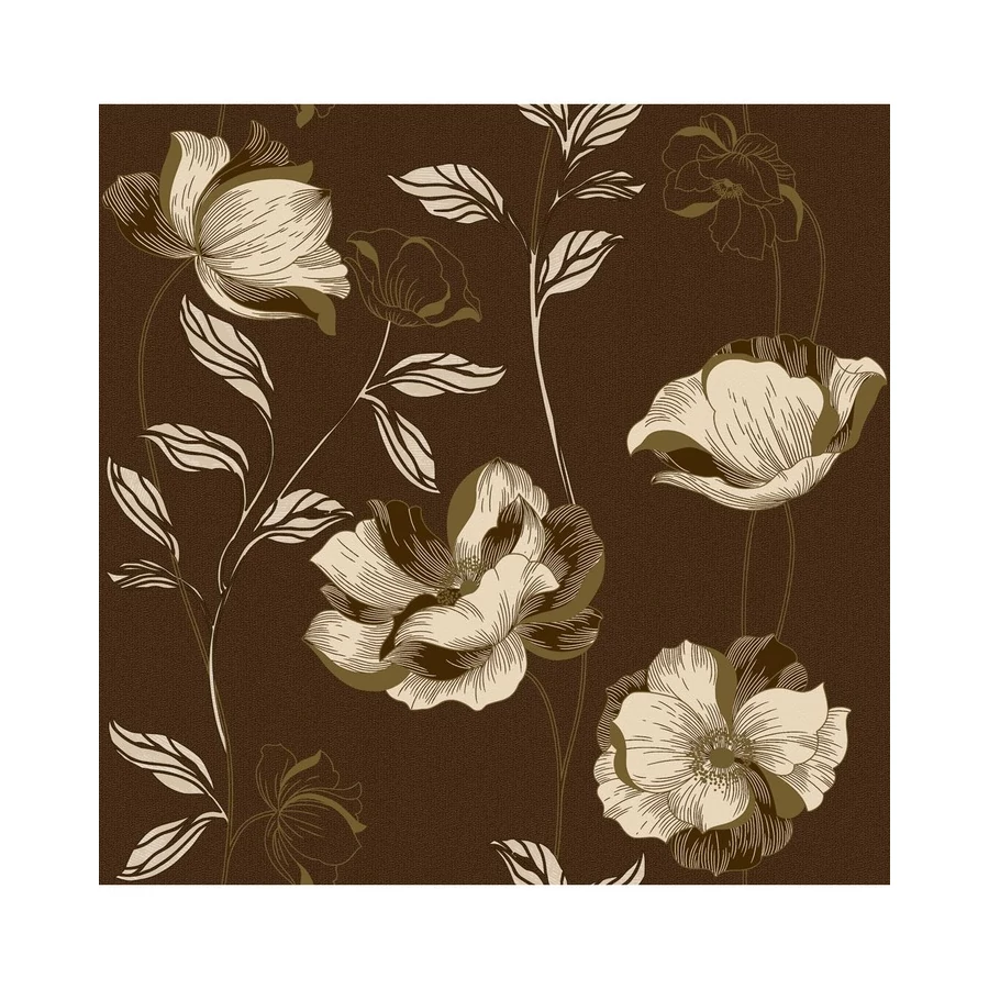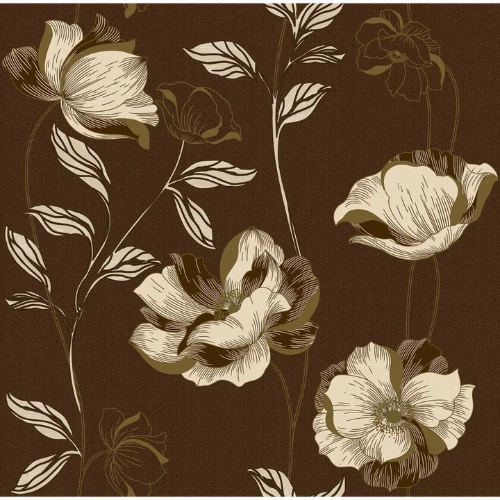 Barna alapon krém törtfehér világos bézs virágos tapéta
