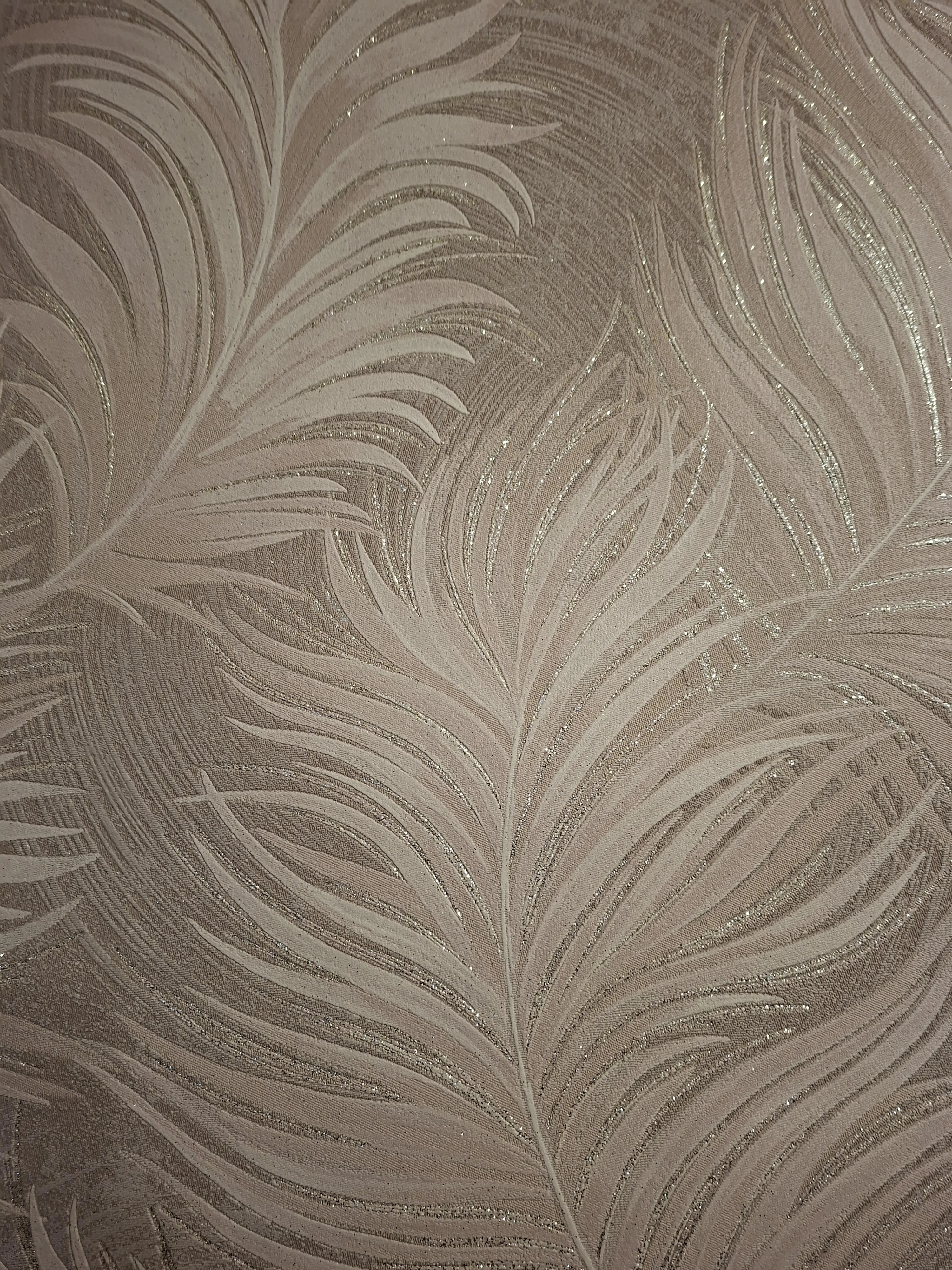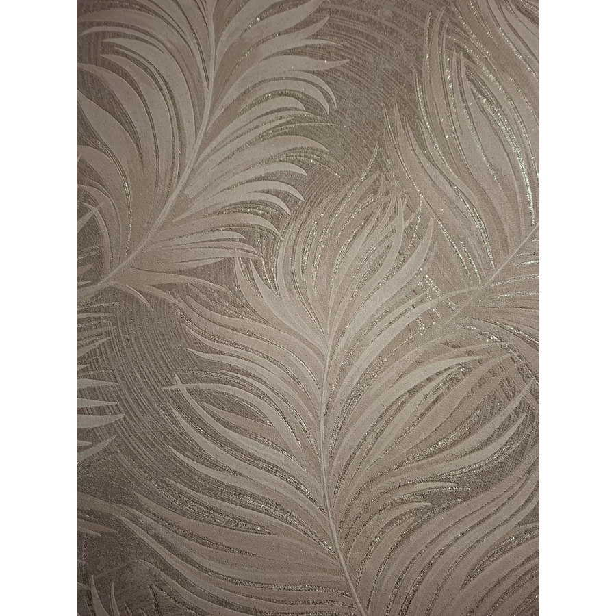 Bézs barna csillámos levél mintás tapéta
