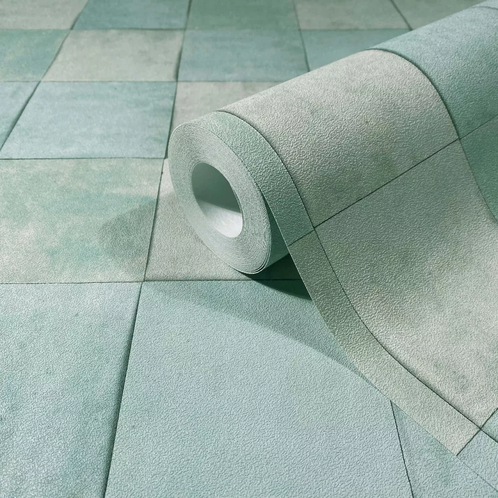 Burkolat hatású pasztell zöld kék színű tapéta