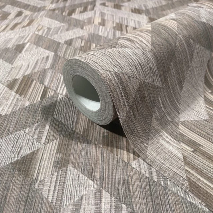 Ezüstös szürke és hűvös taupe tónusú geometriai mintás tapéta