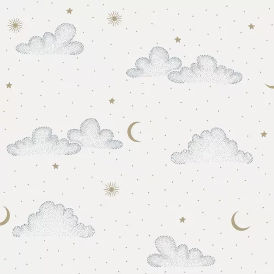 Fehér alapon kék pezsgőarany égbolt mintás tapéta