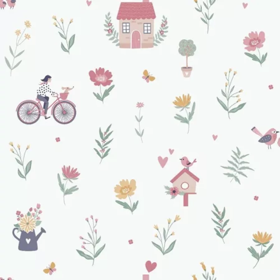 Fehér alapon rózsaszín virágos tapéta