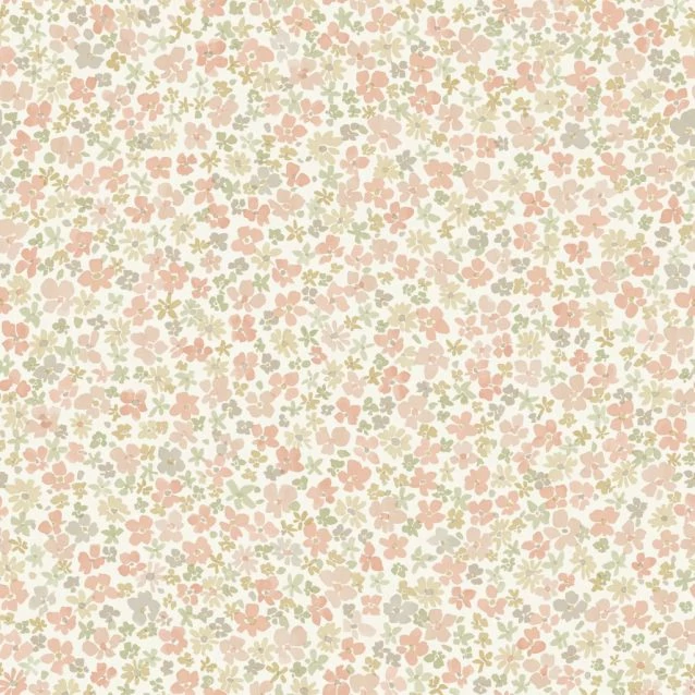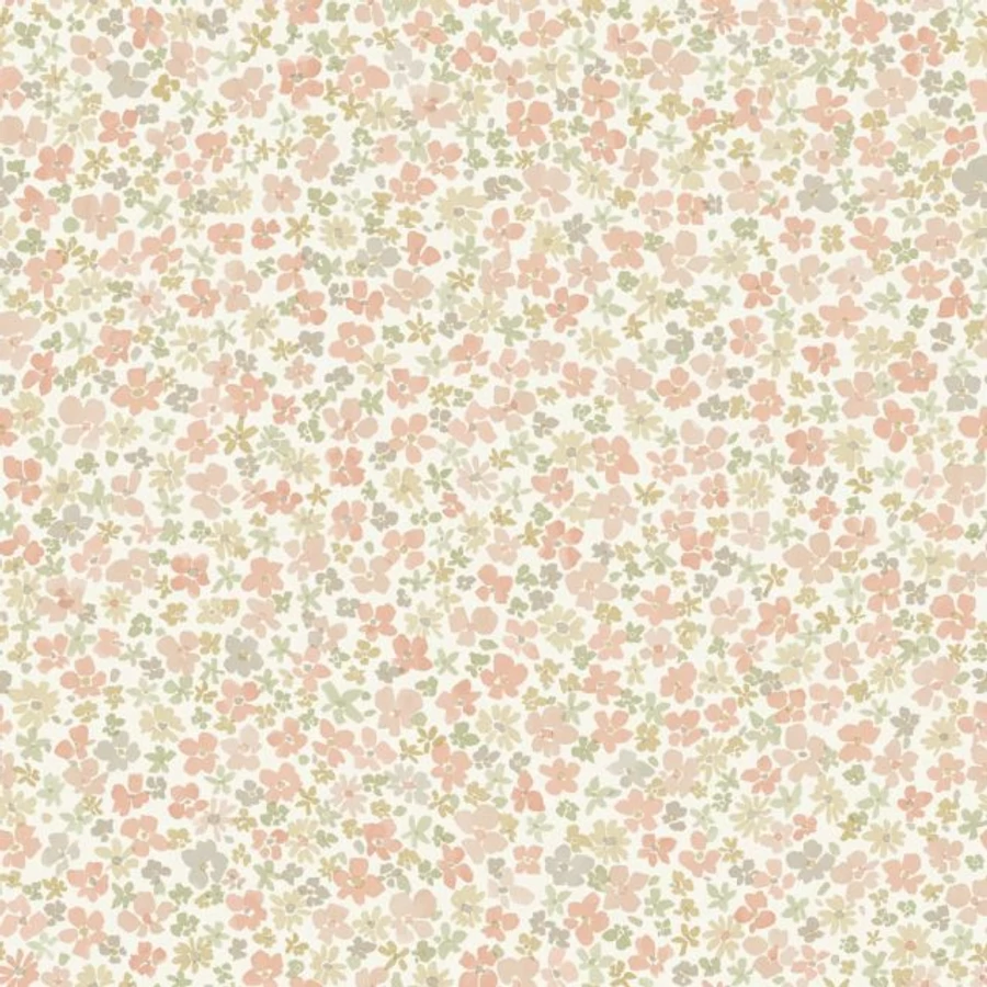 Fehér alapon rózsaszín zöld okkersárga virágos tapéta
