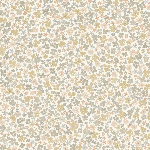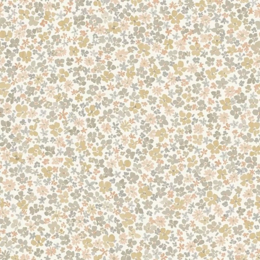 Fehér alapon szürke bézs rózsaszín okkersárga virágos tapéta