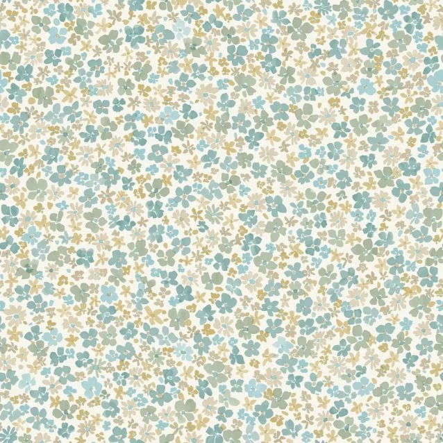 Fehér alapon türkiz zöld kék okkersárga virágos tapéta