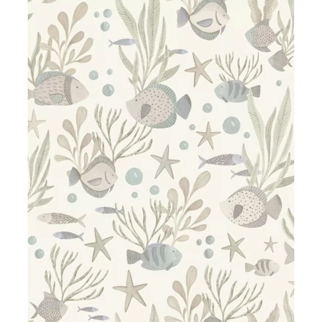 Fehér alapon zöld bézs szürke kék tenger alatti világ mintás tapéta