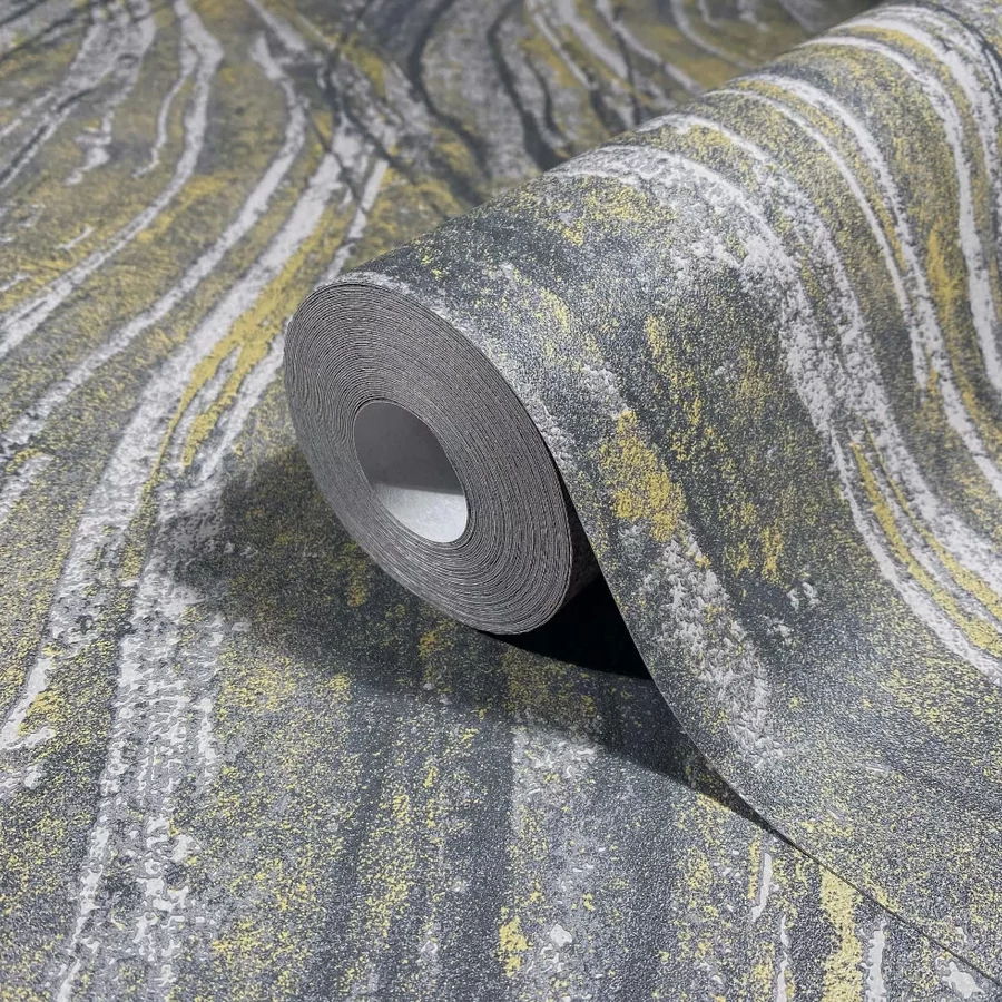 Hullámos sárga antracitszürke színű tapéta