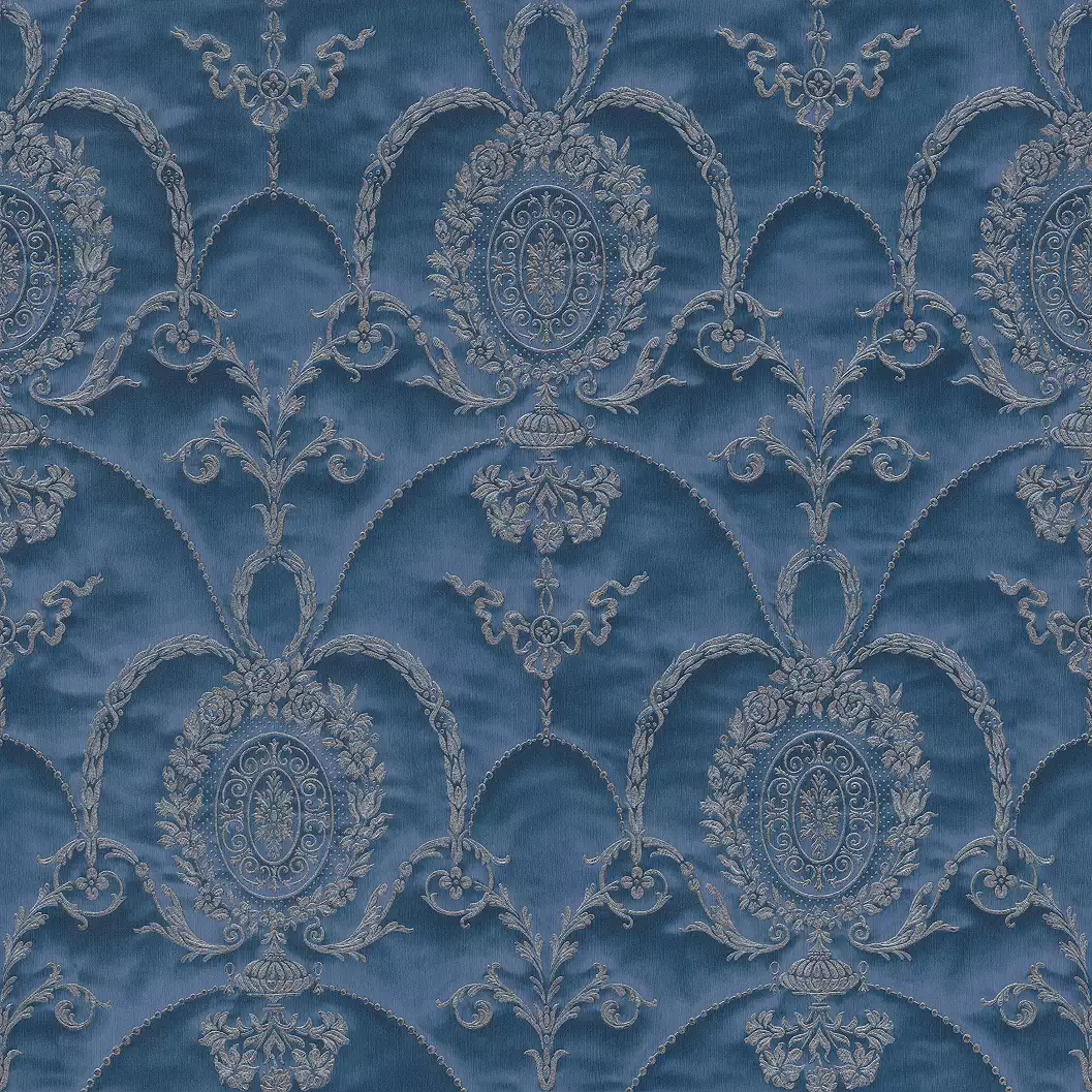 Kék színű barokk mintás tapéta