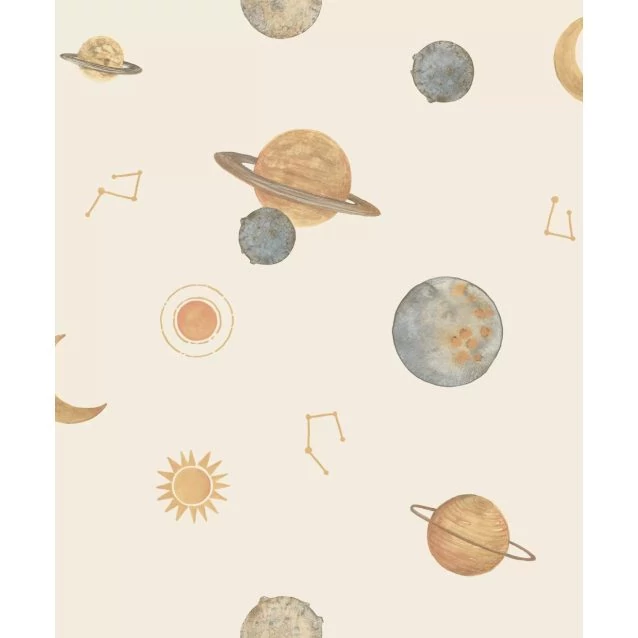 Krém alapon felhő és bolygó nap hold mintás tapéta