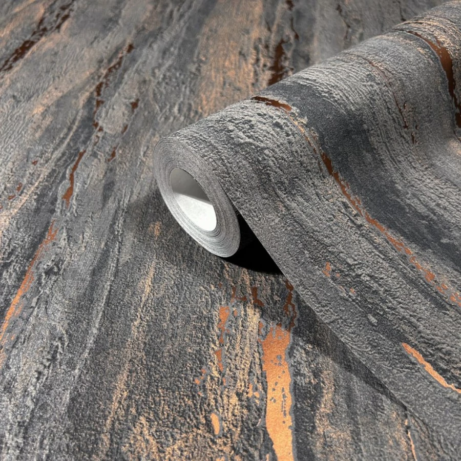 Matt fekete alapon fényes arany vakolat mintás tapéta