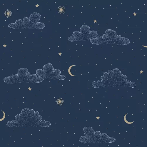 Mélykék alapon babakék pezsgőarany égbolt mintás tapéta