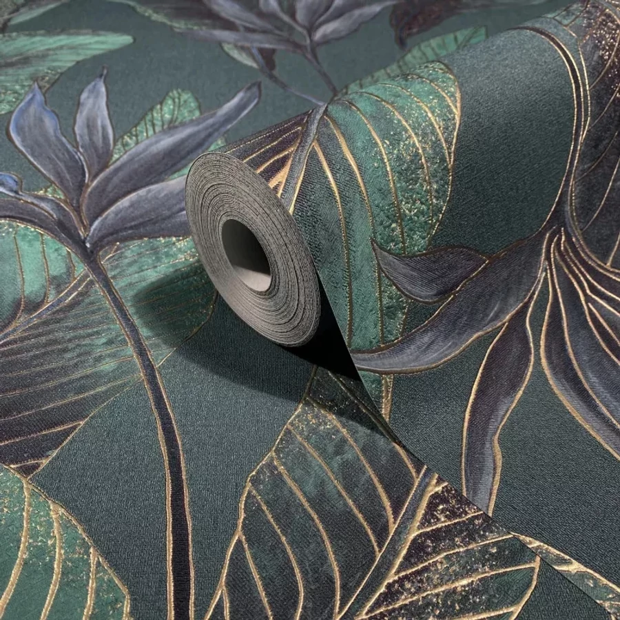 Mélyzöld leveles tapéta