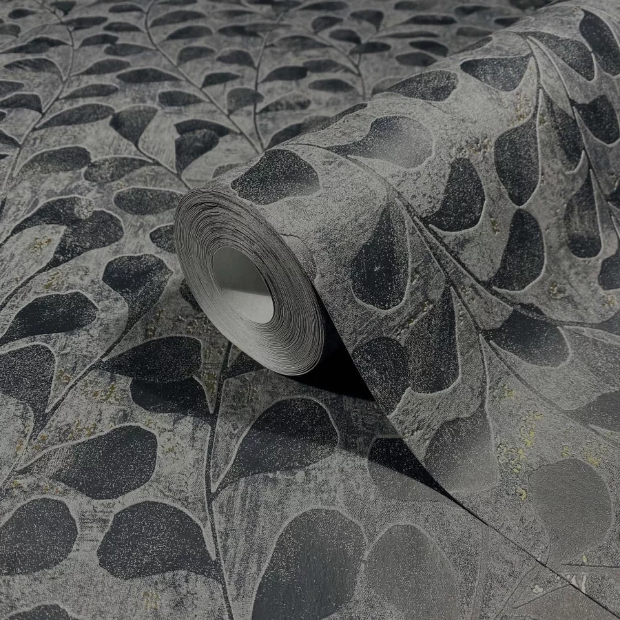 Modern fekete szürke leveles tapéta