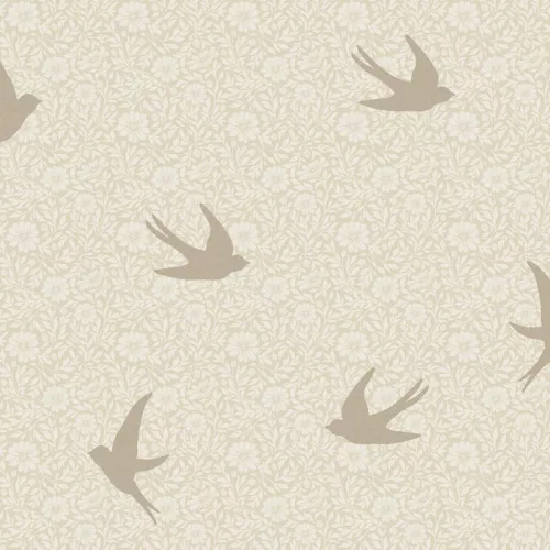 Sűrű virágmintán fecske madaras bézsbarna pezsgőarany tapéta