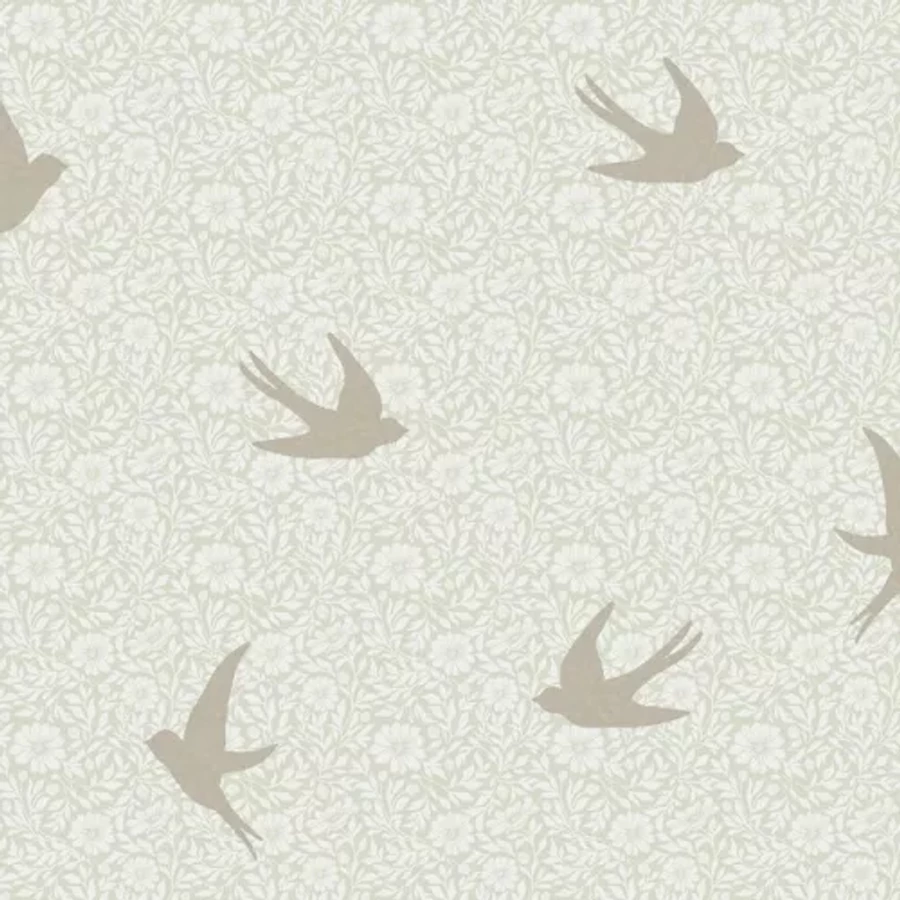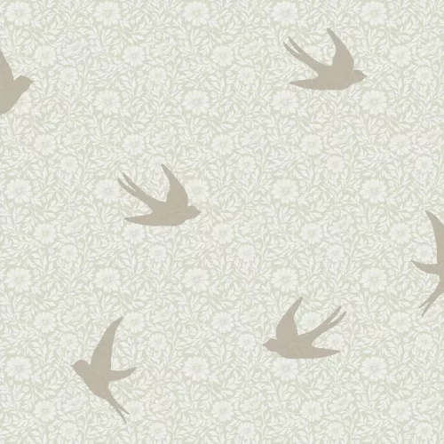 Sűrű virágmintán fecske madaras zöld pezsgőarany tapéta