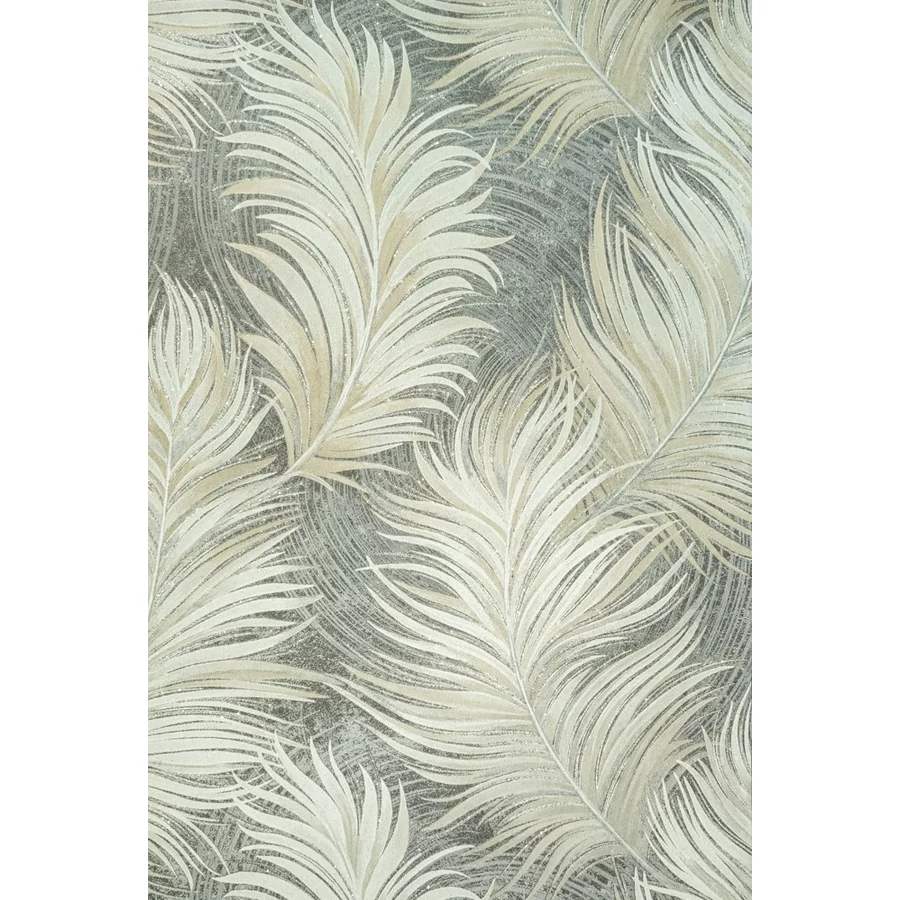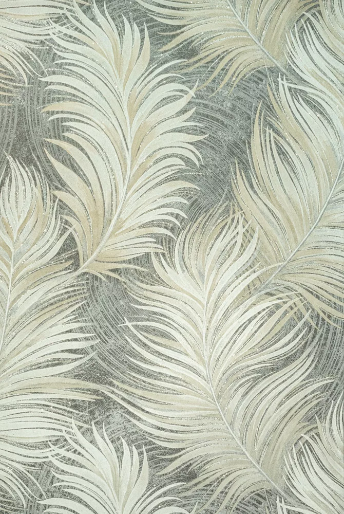 Szürke antracit alapon drapp krém nagy leveles tapéta