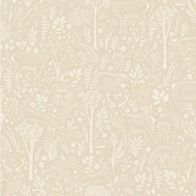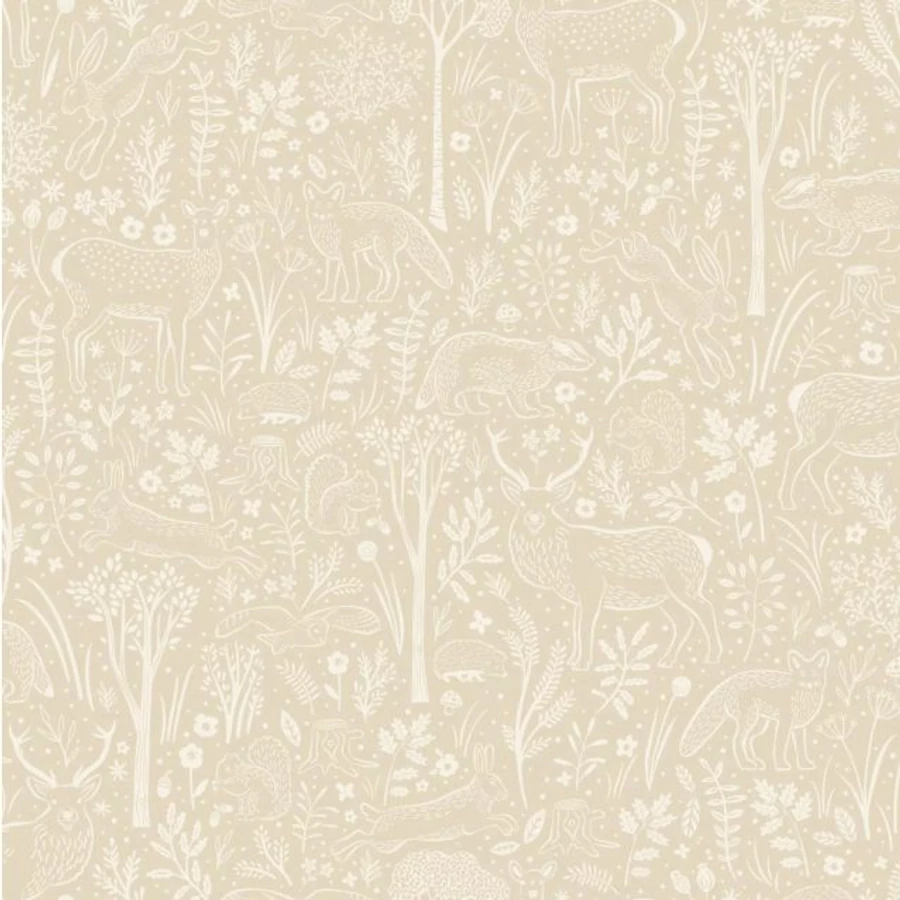 Világos bézs alapon erdei mintás tapéta