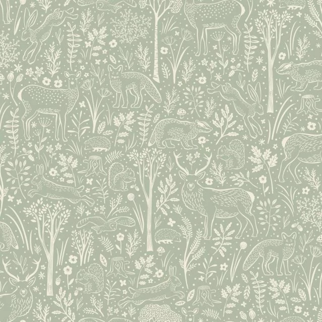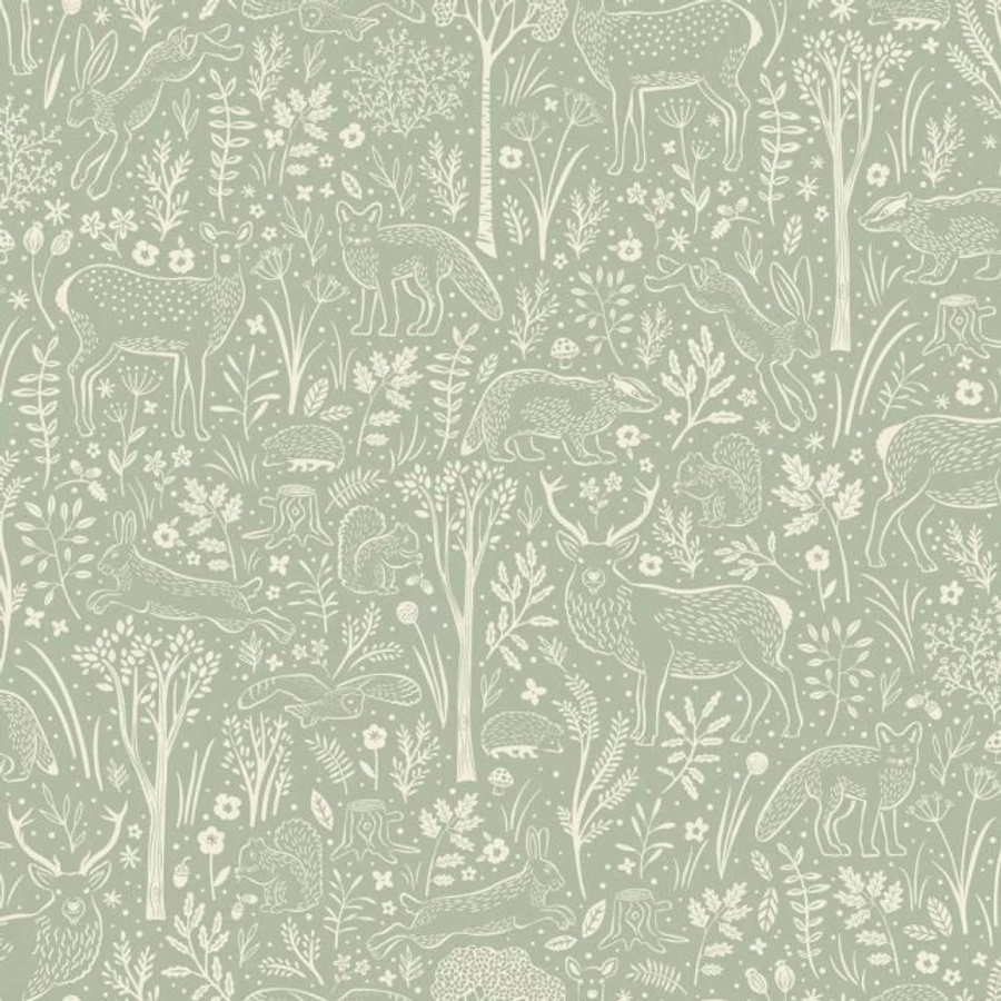 Zöld alapon erdei mintás tapéta