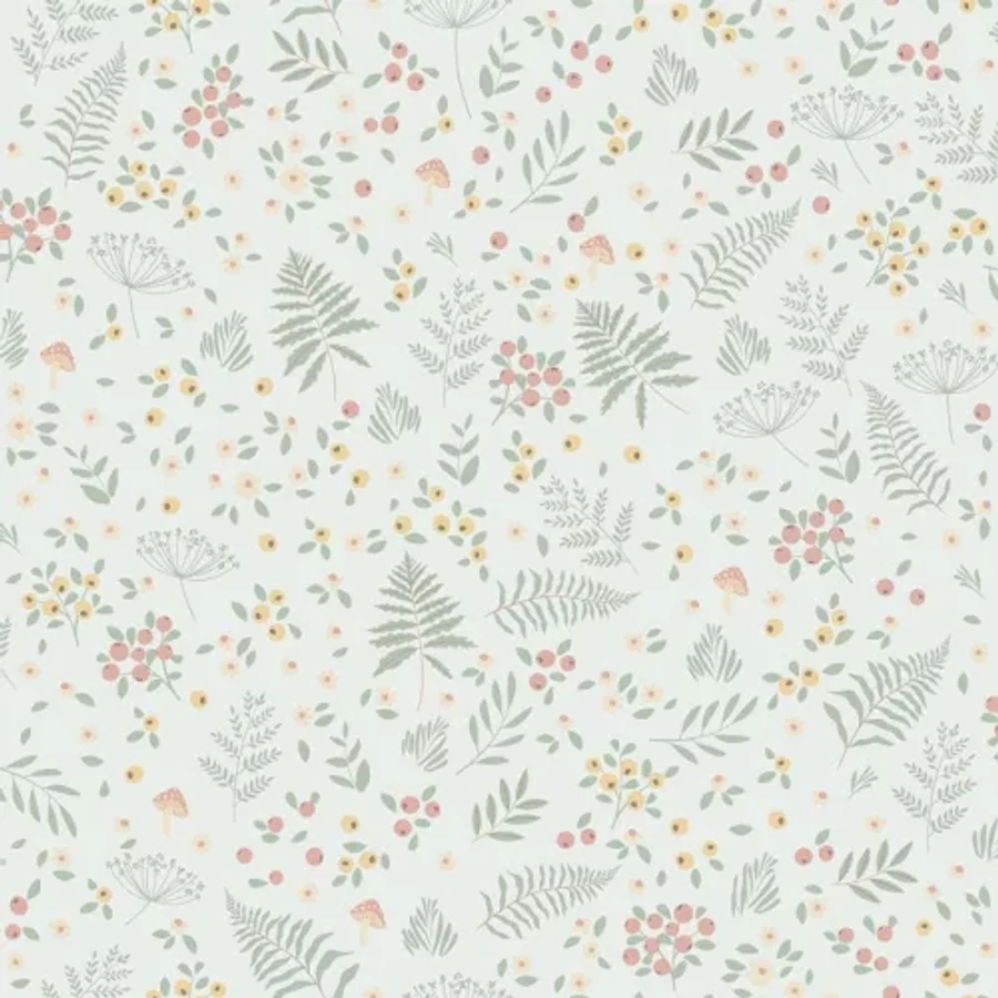Zöld alapon pasztell sárgagyümölcsös leveles gombás tapéta