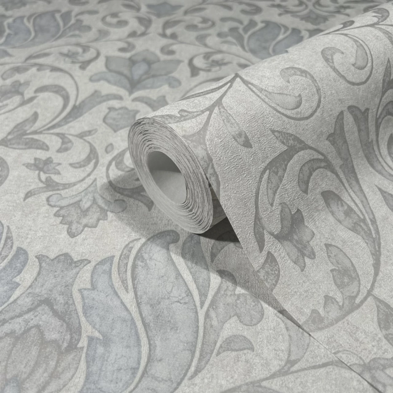 Matt ekrü alapon kék szürke virágos tapéta